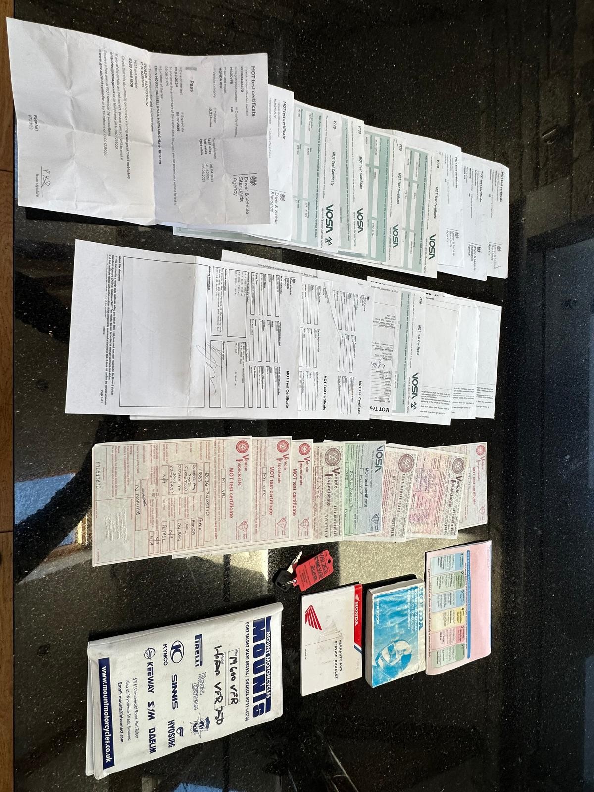 Two keys, service book, hand book and all the original MOT certificates that back up the incredibly low mileage. These are great bikes and are hard to find in this condition.