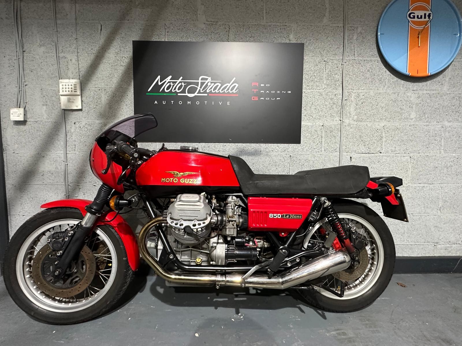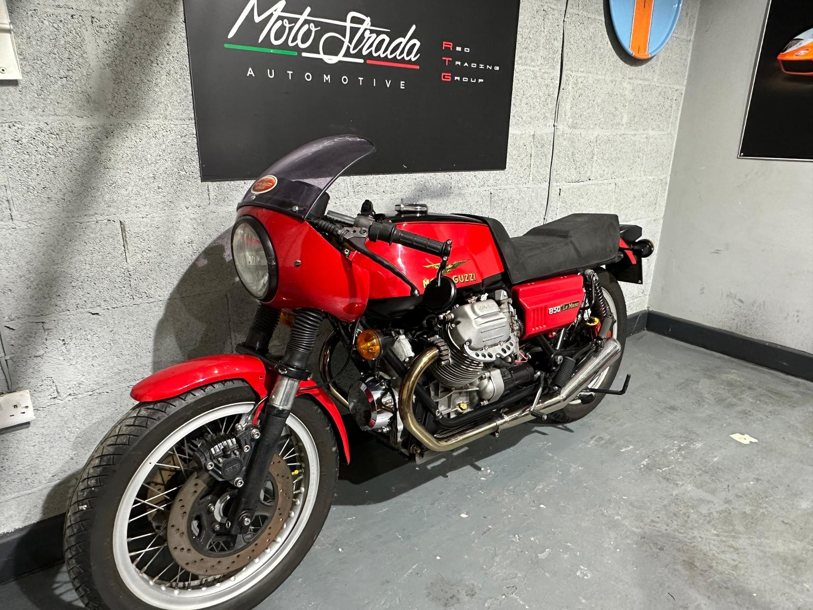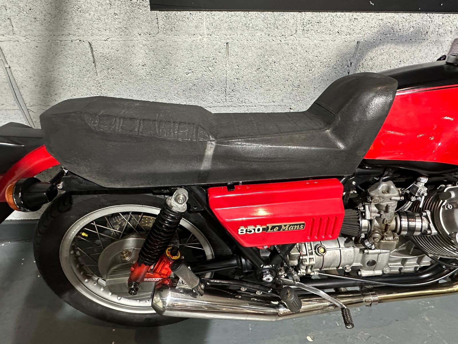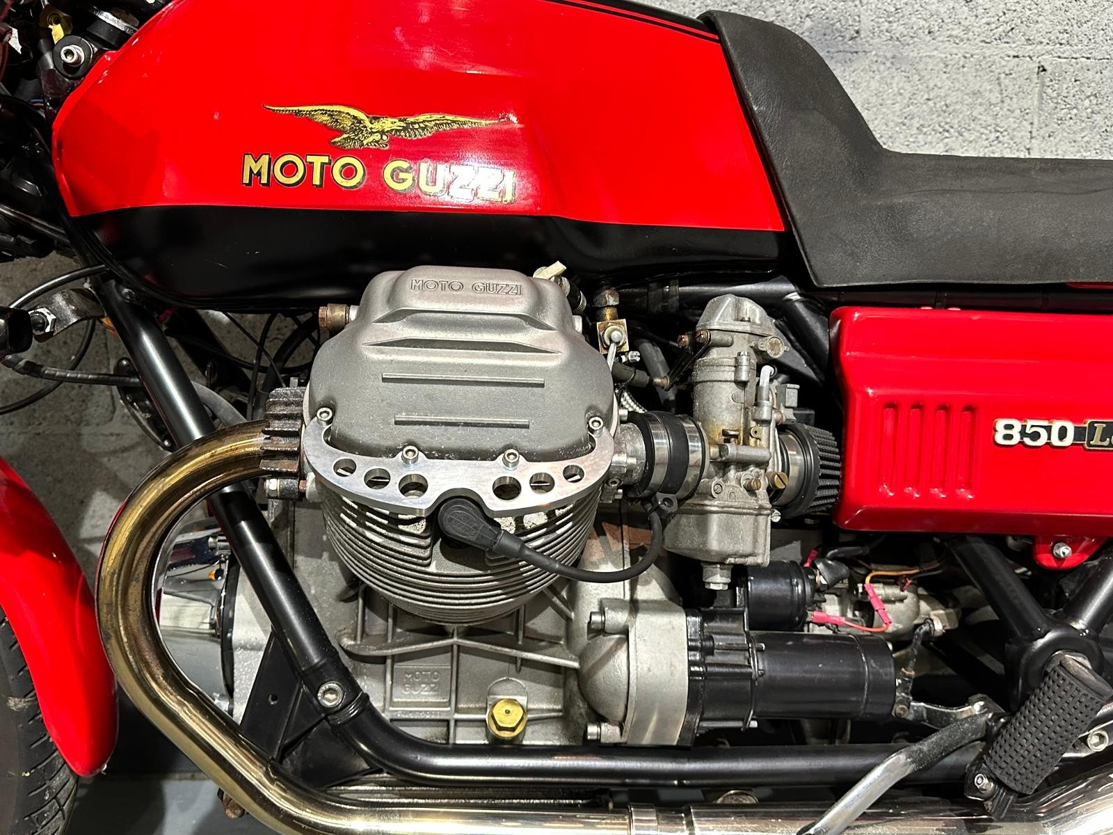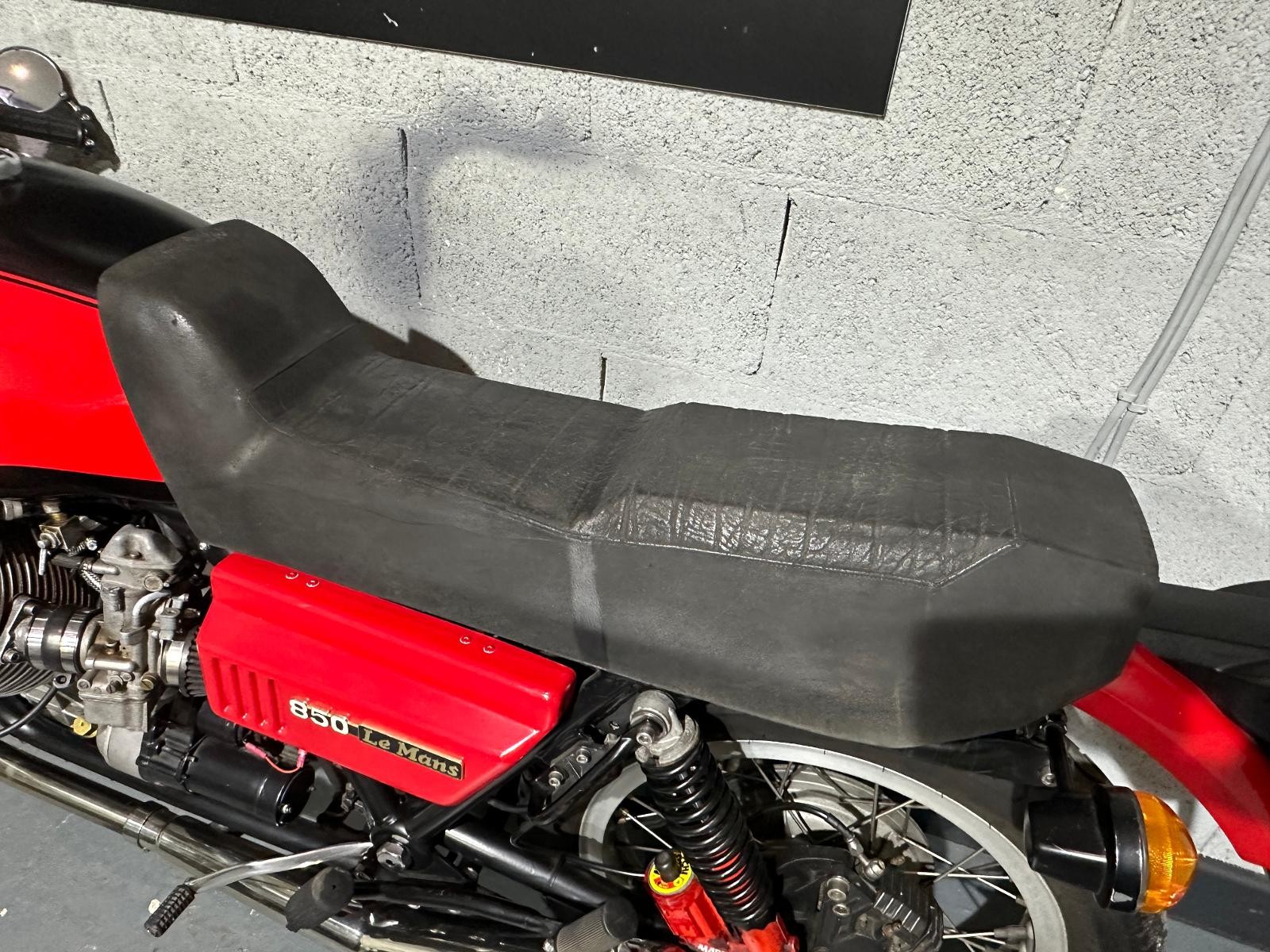 1980 Moto Guzzi Mk2 Le Mans with only 24,293 miles inn 46 years. The previous owner purchased the bike in 1987 and kept it for 35 years. In 2017 he had the bike restored, there is an invoice for £4,617 documenting all the work that has been done. The bike also benefits from being fitted with a host of Mk1 bits including tank, ignition,headlamp, clocks and front fairing Borrani spoked wheels, Tommaselli clip-ons and a handmade stainless steel exhaust system ads to the cafe racer look.