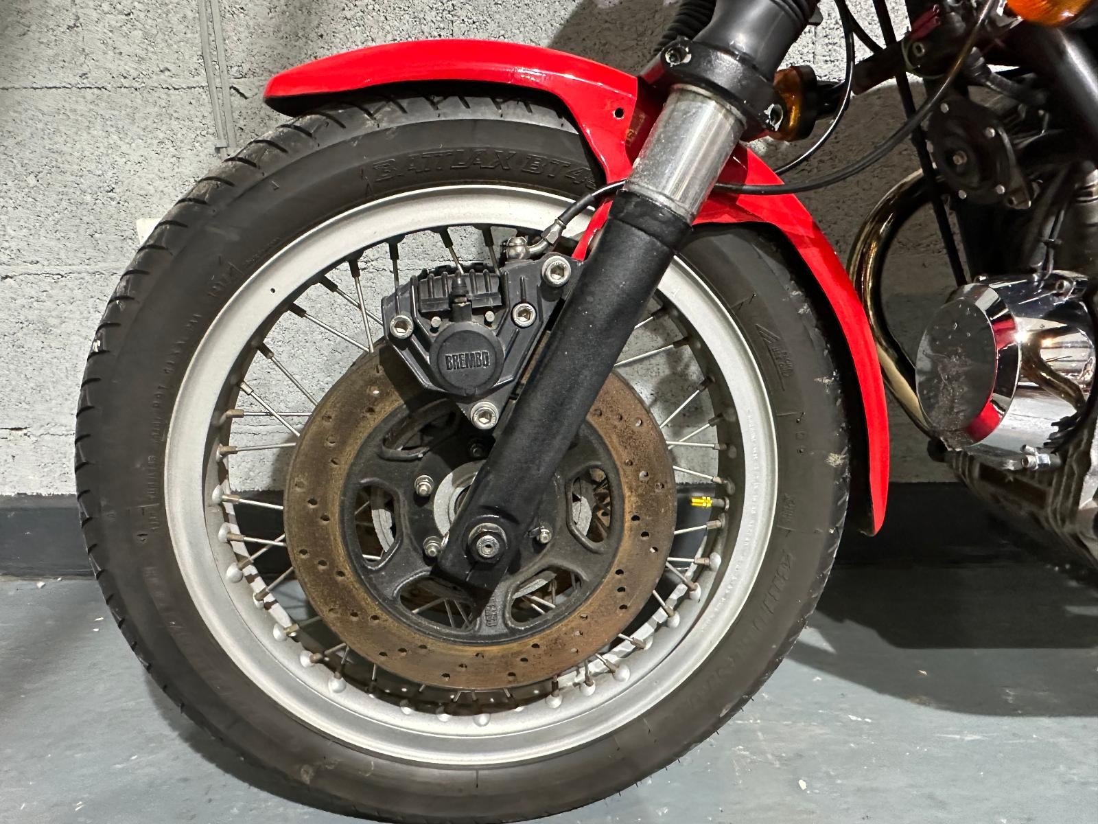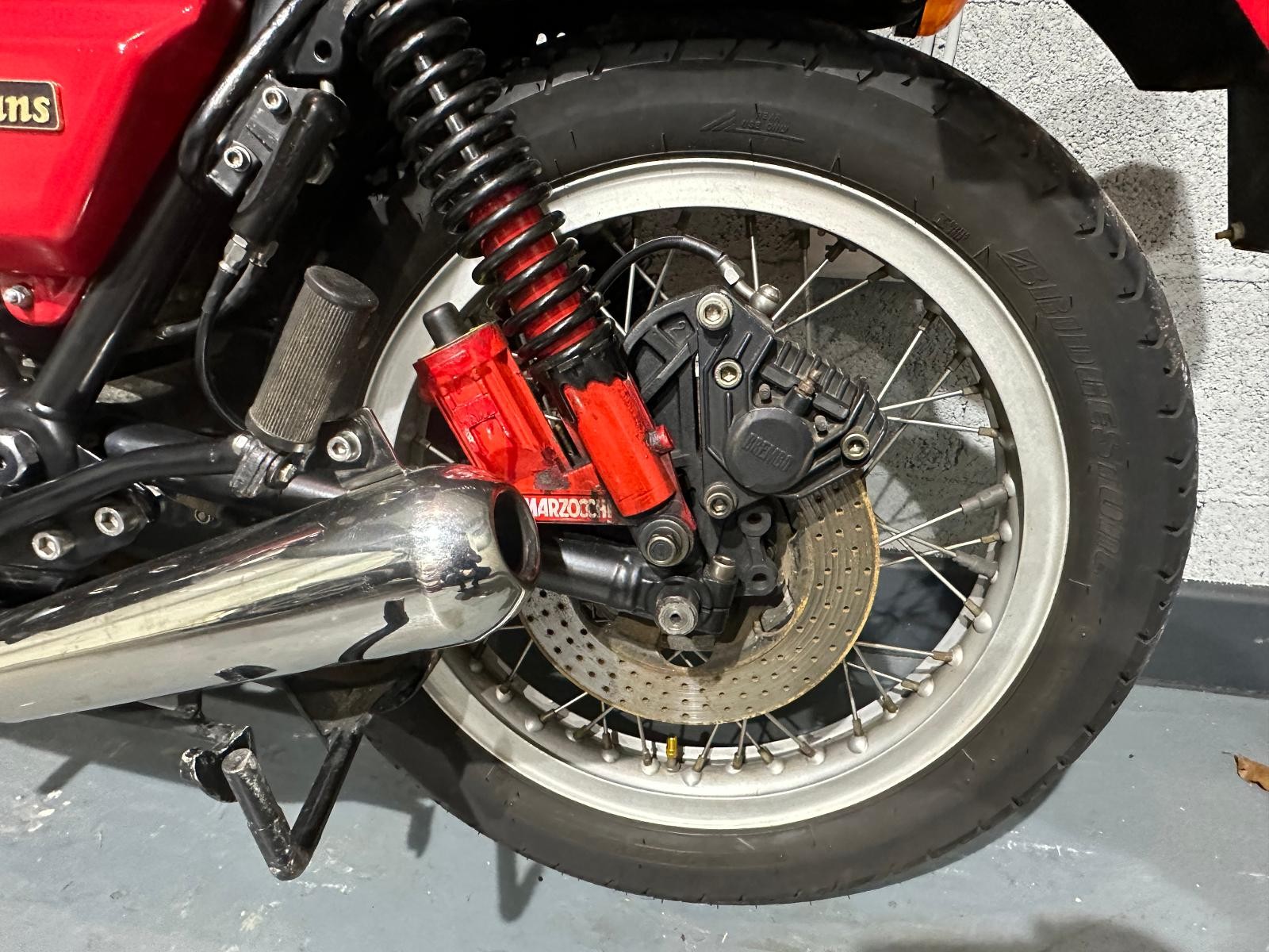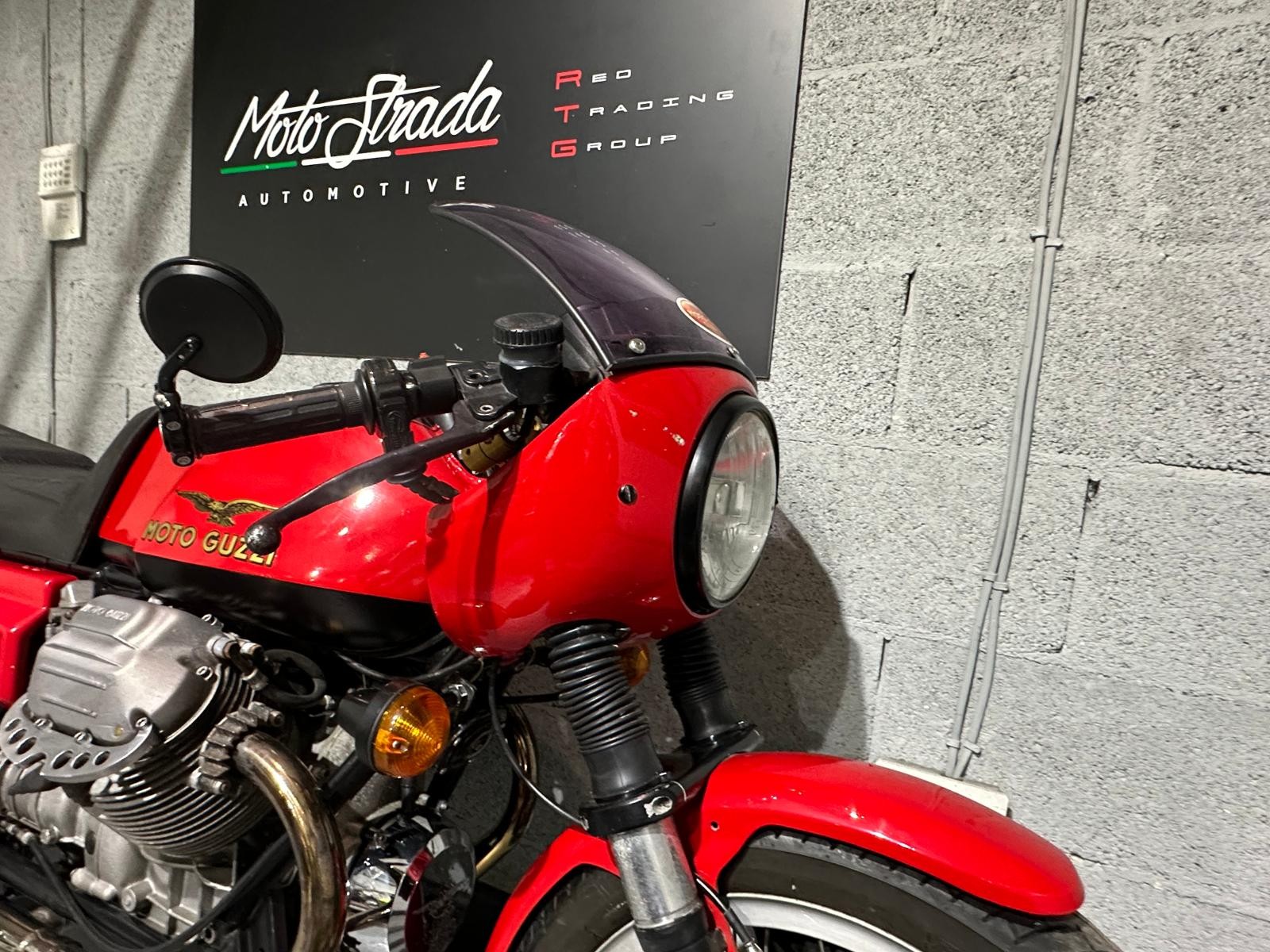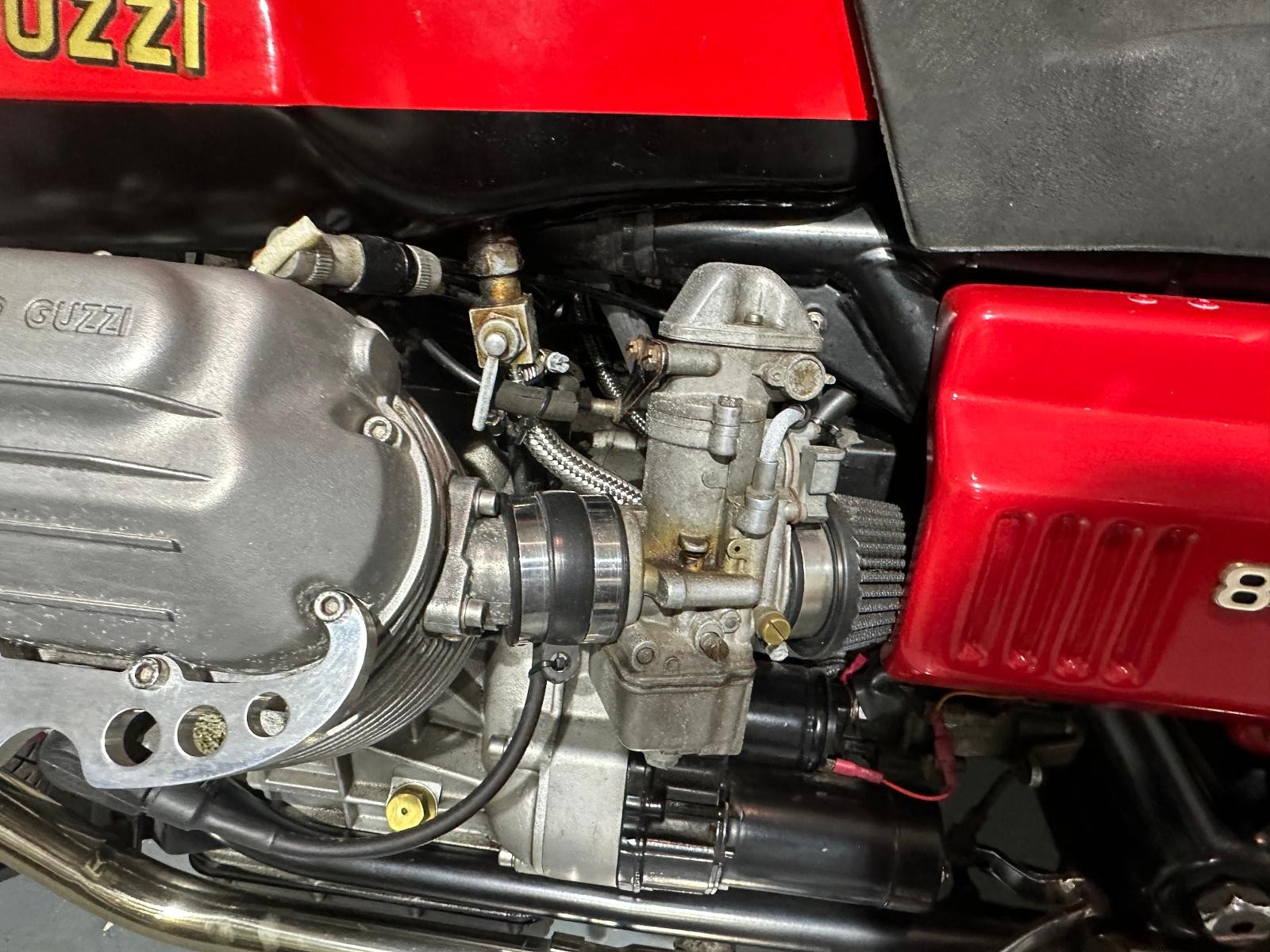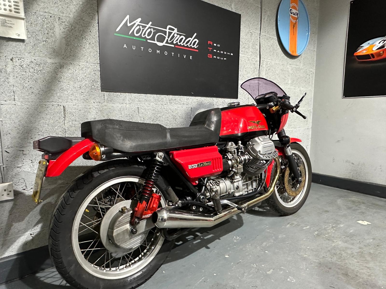 1980 Moto Guzzi Mk2 Le Mans with only 24,293 miles inn 46 years. The previous owner purchased the bike in 1987 and kept it for 35 years. In 2017 he had the bike restored, there is an invoice for £4,617 documenting all the work that has been done. The bike also benefits from being fitted with a host of Mk1 bits including tank, ignition,headlamp, clocks and front fairing Borrani spoked wheels, Tommaselli clip-ons and a handmade stainless steel exhaust system ads to the cafe racer look.