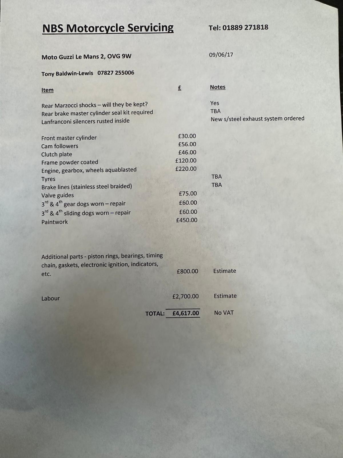 Correct Le Mans VE frame and engine numbers.