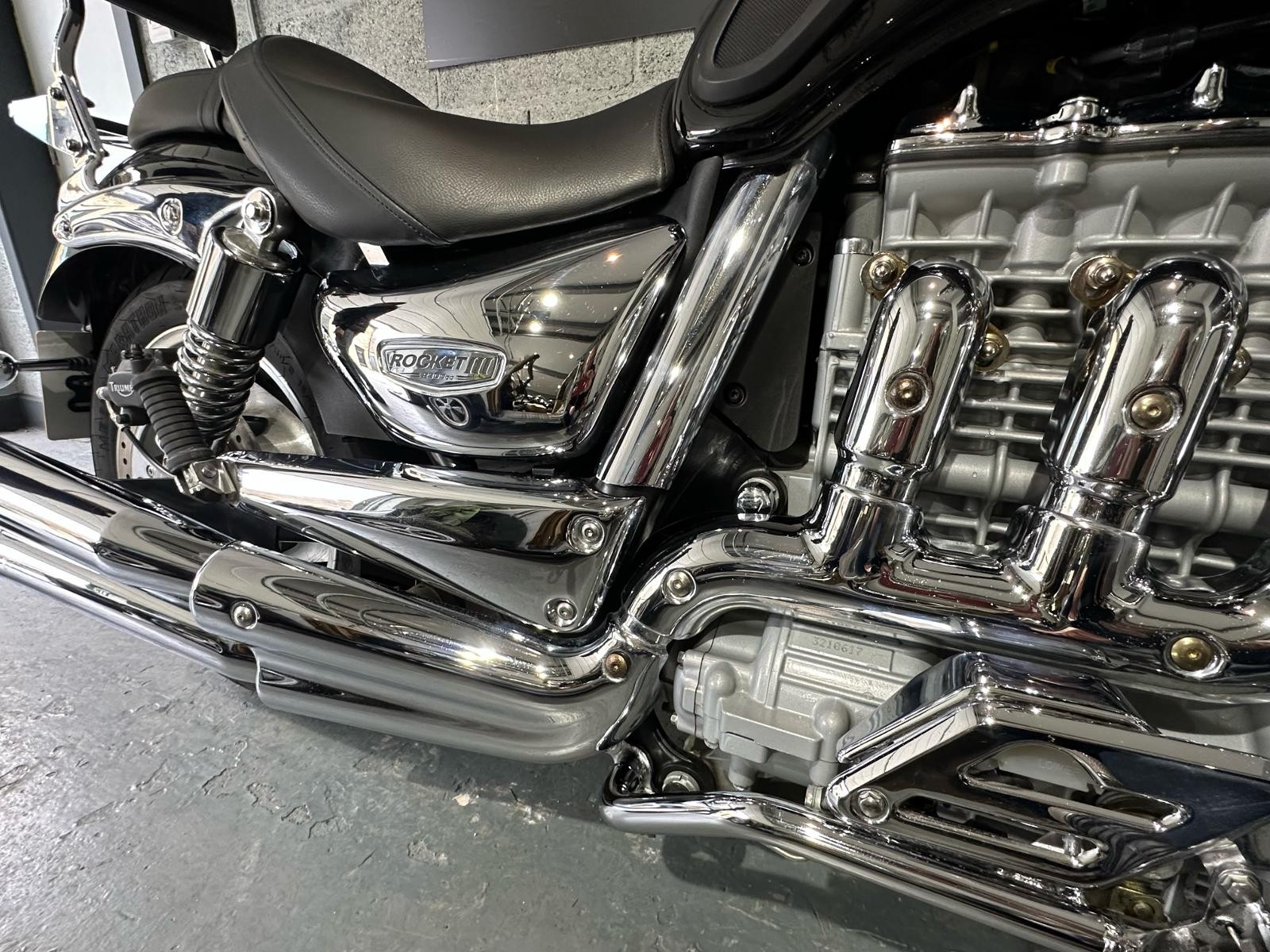 Fantastic opportunity to purchase a 2004 1 owner Triumph Rocket 3 with and incredible 321 recorded miles. The bike has been in storage for many years and is literally as brand new other than a slight bit of corrosion where the lacquer has lifted on the polished wheels (common Problem) The bike will be serviced and given a new mot prior to sale, a new battery has been fitted and the bike bursts into life at the first press of the starter button. This can be used and enjoyed as a basically new bike or put away as an investment.